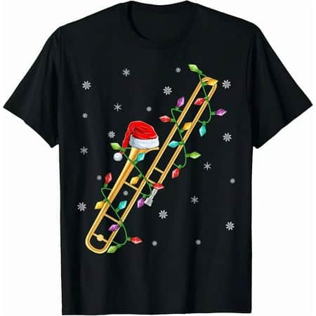 Trombone Music Lover Holiday Lights Brass Player Festive Art Unisex T-Shirt up to Size 5XL